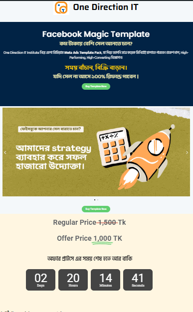 We will make this landing page for one direction it agency, this is a meta ads seling template landing page.
